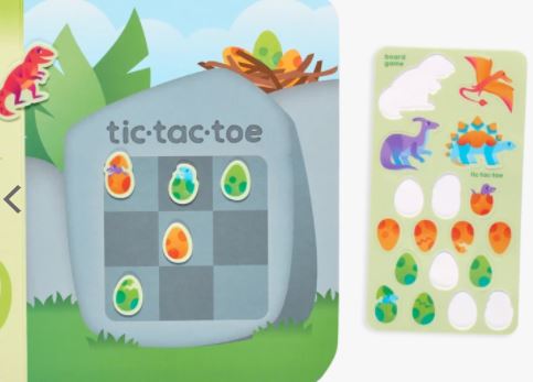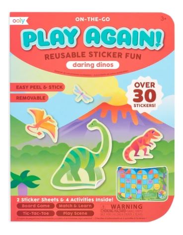 This activity kit will encourage your child’s imagination with removable, easy peel stickers that can be used over again. The activity board book is sturdy and sized at 6.5 x 8.5 inches with lots of room for play. With 30 plus reusable dino stickers that can be used on the play scene board page, learn & match board page, tic tac toe board page and the dinosaur game board page with a spinner wheel. Daring Dinos Play Again! Mini On-The-Go-Activity Kit will supply imaginative playtime anywhere with no mess, just plenty of fun!