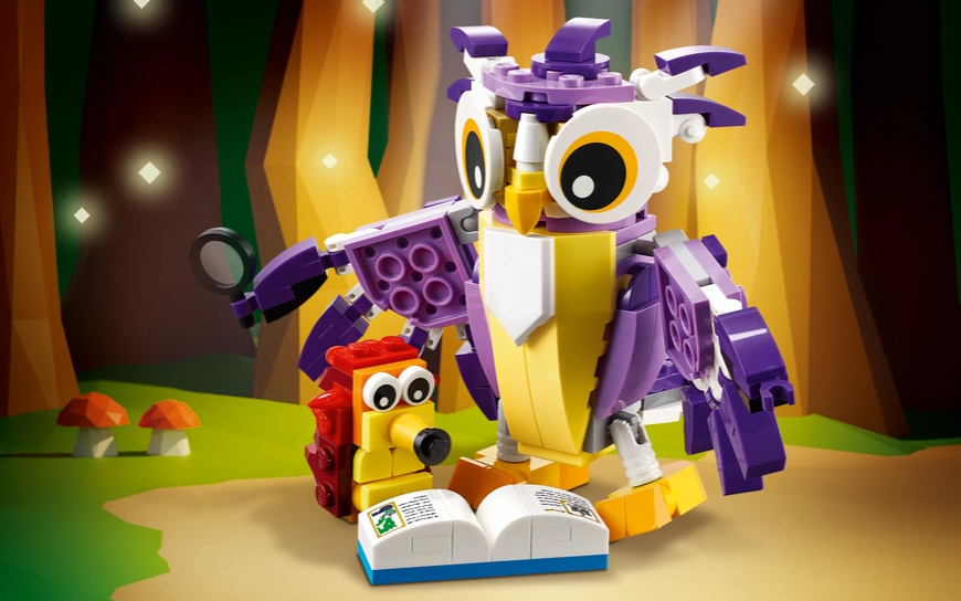 Take a trip deep into a fantasy forest for magical fun with woodland animals! Watch as a wise owl teaches a cute hedgehog to read an exciting storybook with a magnifying glass. Later, rebuild them into a beautiful young deer and a rabbit playing together, or a cheeky squirrel nibbing on an acorn. The enchanting fun never stops with this brilliant 3in1 set.
