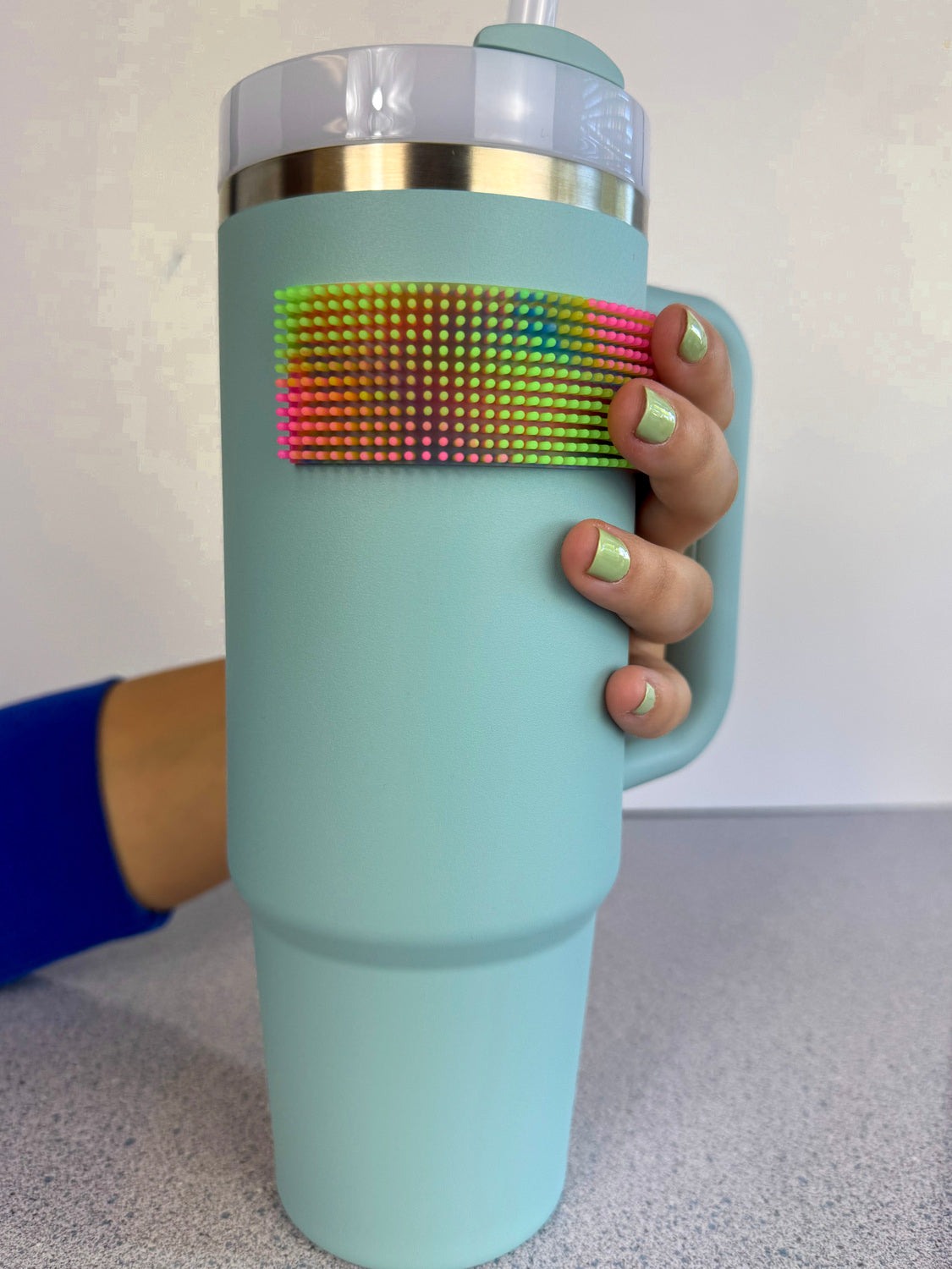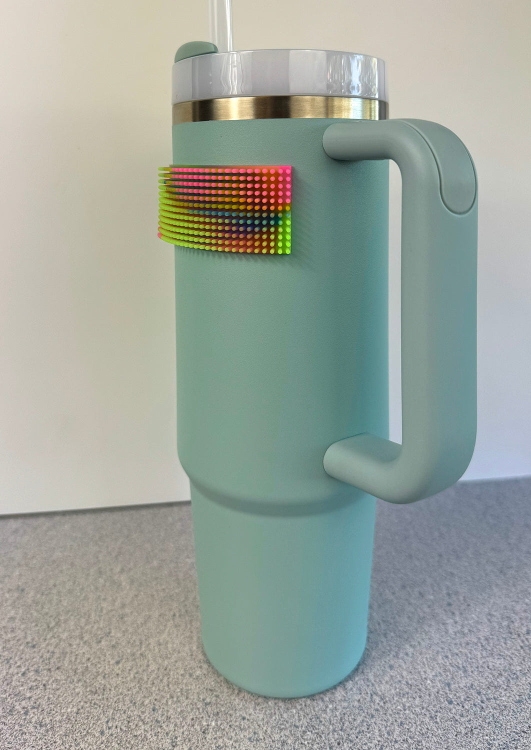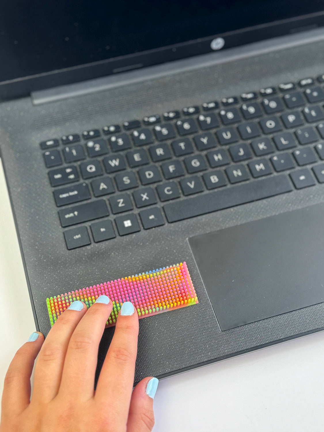 Sensory stickers help calm and focus! Simply touch, swipe, or fidget with the Zen Dots to manage stress, boost concentration and enjoy a calming effect. This set includes 2 multicolored Silicone Zen Strips. The soothing, unique bristly texture offers a new level of sensory satisfaction.  With an easy peel and stick, and application, use on your everyday items including smartphones, laptops, tablets, or even water bottles. Able to be removed and repositioned easily.