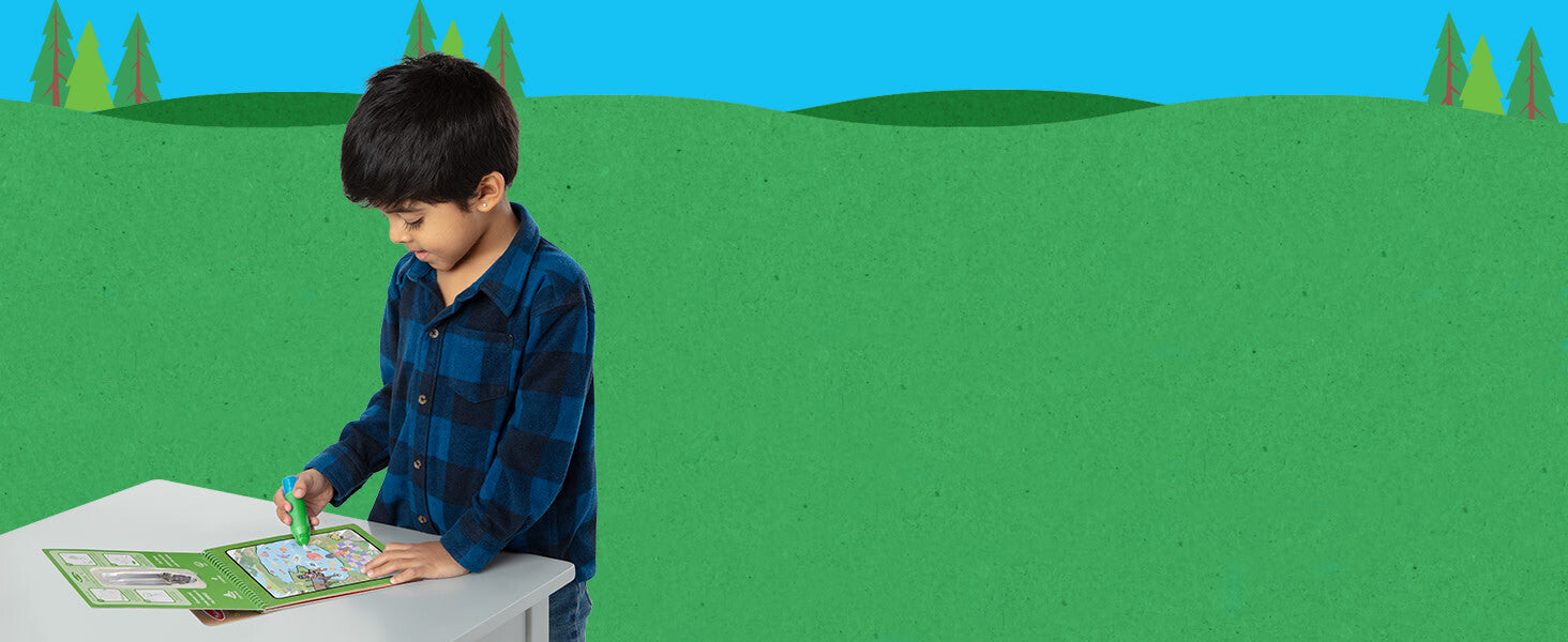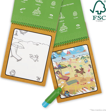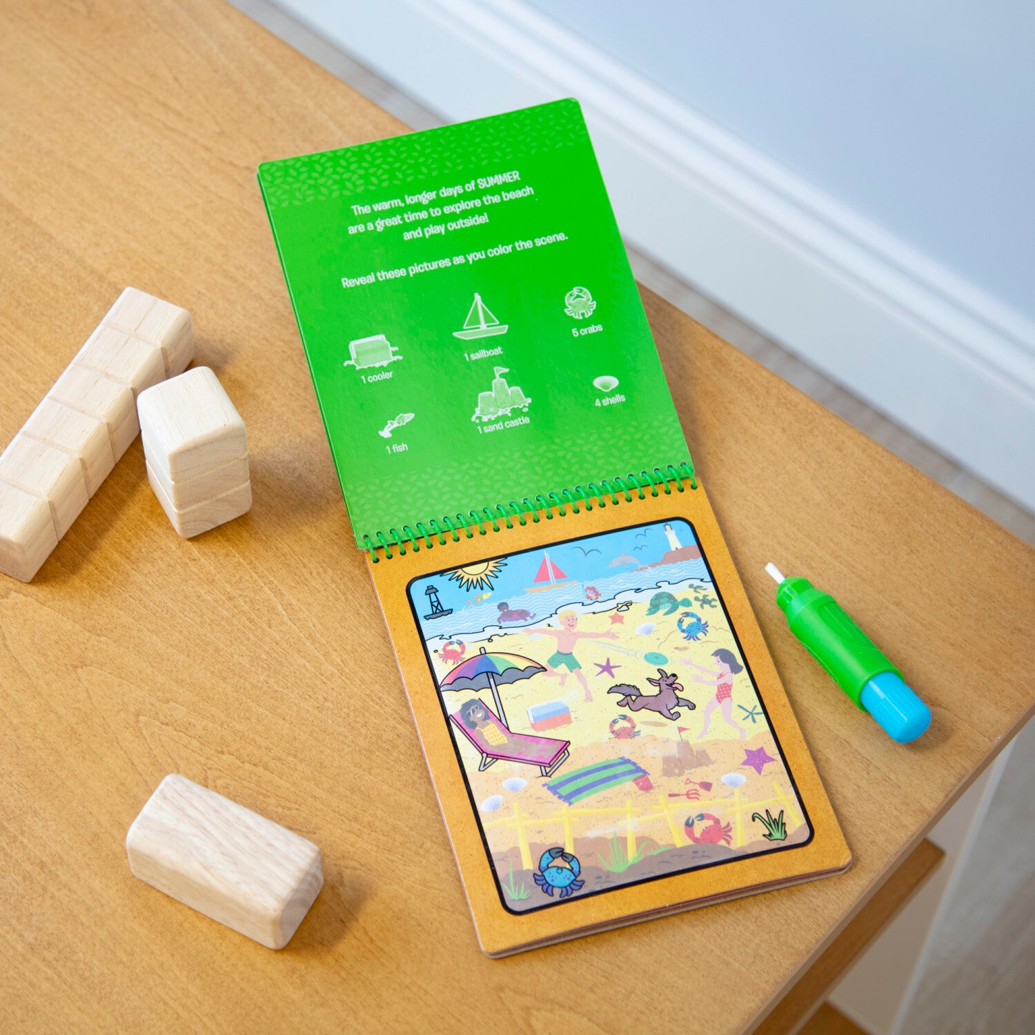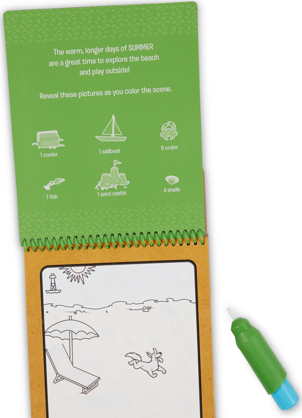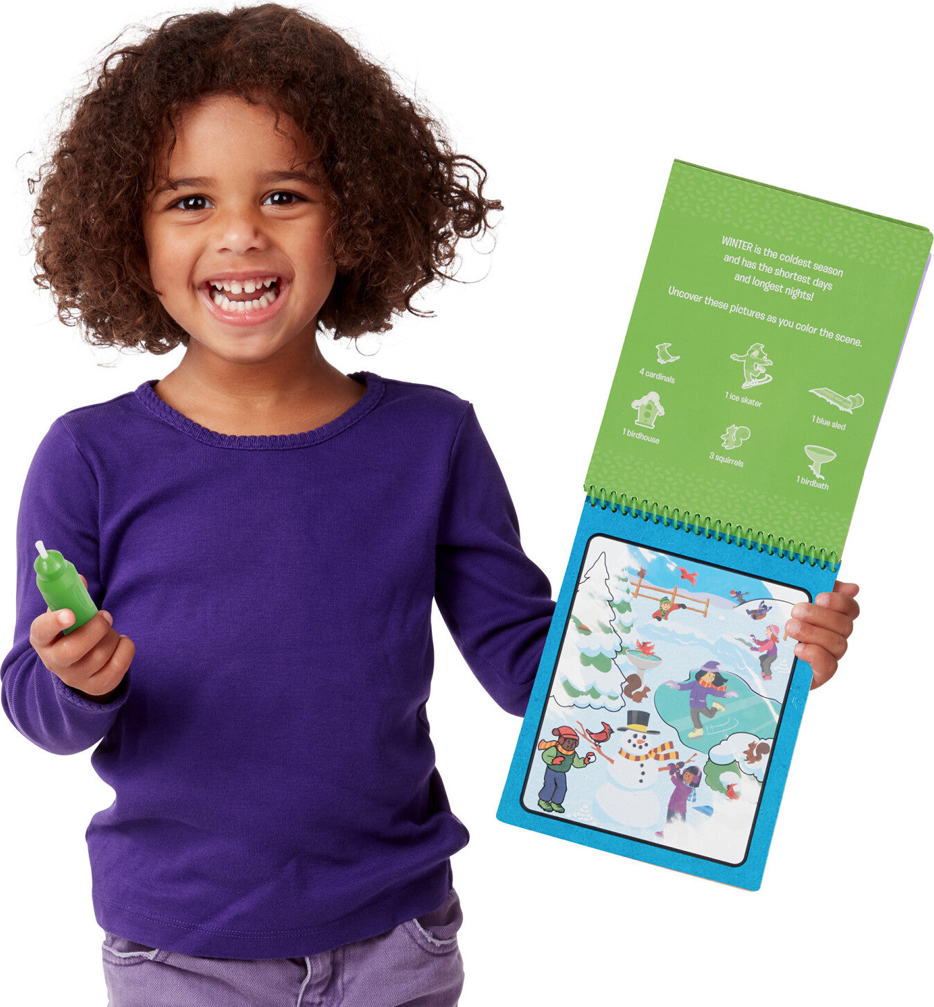 Explore outdoor scenes and adventures with the Water Wow! Seasons Water Reveal Pad. The exciting no-mess paint-with-water activity for kids three and older includes four spiral-bound reusable pages (winter, spring, summer, and fall) and a refillable water pen. Simply use the pen to color in each scene and details and vibrant color appear with every stroke! Then, let the page dry to erase the pictures and color it in again and again. There are seek-and-find activities for every scene. The chunky water pen stores in the cover for easy portability. Let's Explore™ encourages kids four and older to connect with the natural world through imaginative play.