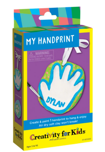 Make an everlasting person or pet print with this super-soft air dry clay. This kit includes paint, brush and hanging ribbon. Creativity Kits, also known as Mini Kits, are big fun in small boxes.