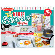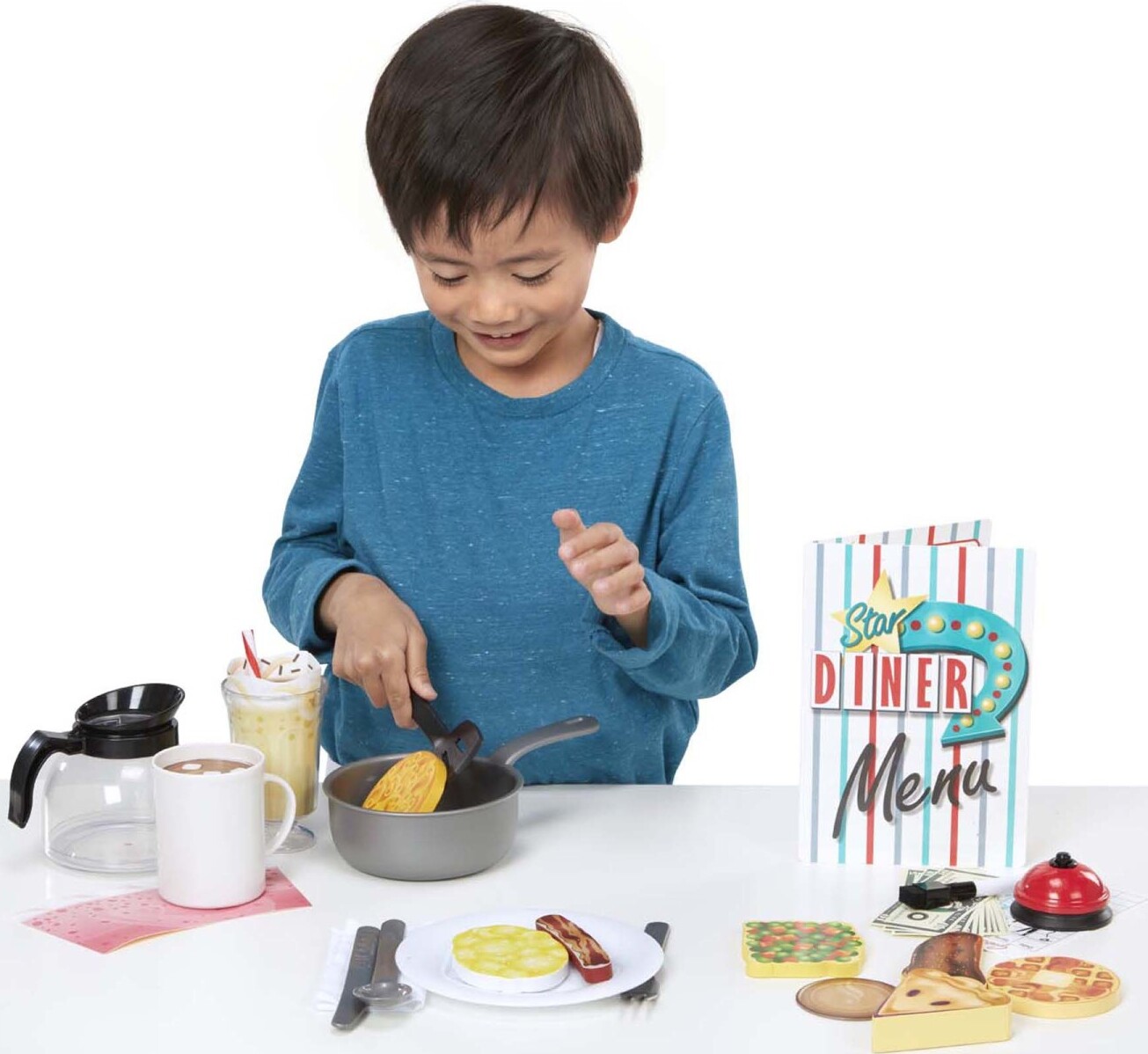 - Durable play food and accessories to order, cook, and serve diner favorites